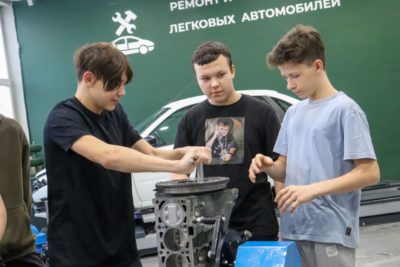 Школьники г. Кемерово 9-11 классов осваивают профессию «Слесарь по ремонту автомобилей» в мастерской «Ремонт и обслуживание легковых автомобилей» под руководством мастеров производственного обучения.