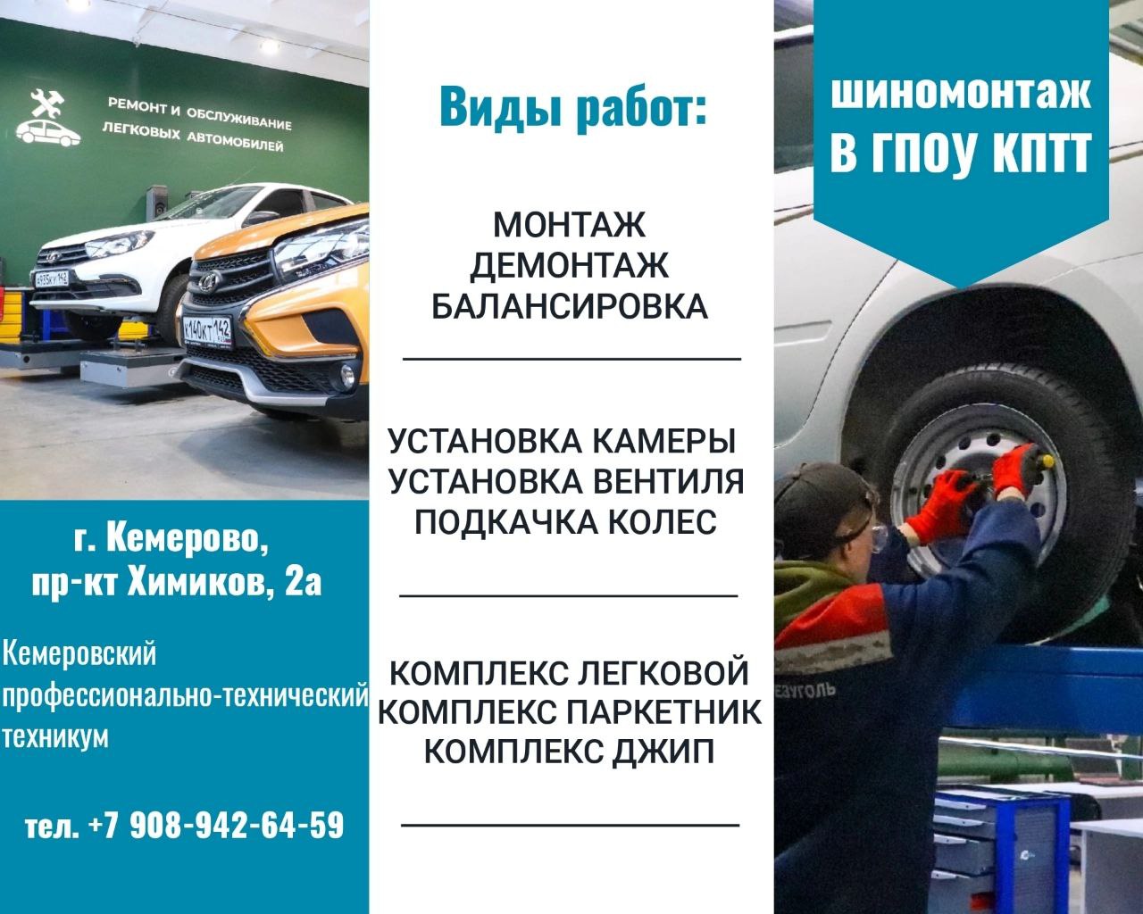 В Кемеровском профессионально-техническом техникуме открыты услуги Шиномонтажа.
