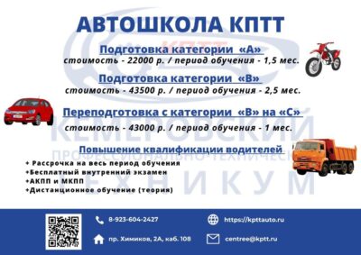 Автошкола КПТТ ведет набор группы, обучение начнётся в ноябре!
